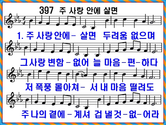 [새찬송가 397장], 주 사랑 안에 살면 PPT, [통일찬송가 454장]