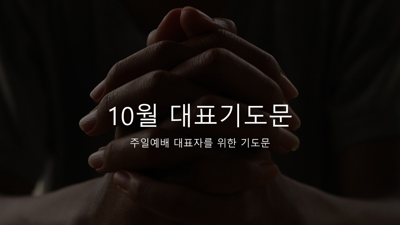 이번 10월 대표기도문에서는 하나님 앞에서 우리의 마음을 돌아보며, 주님의 사랑과 은혜를 구하는 시간을 가집니다. 나라와 민족의 평화, 다음 세대의 보호와 성장, 그리고 주님의 교회를 위한 기도를 통해 영적 회복과 소망을 되새기는 기도를 소개합니다.